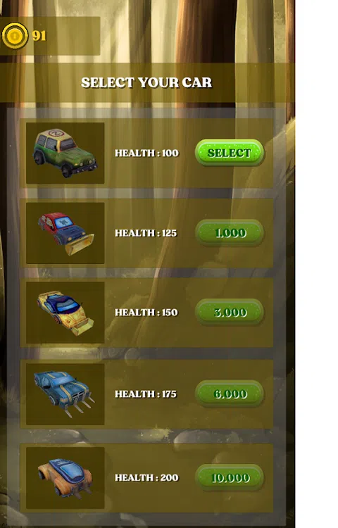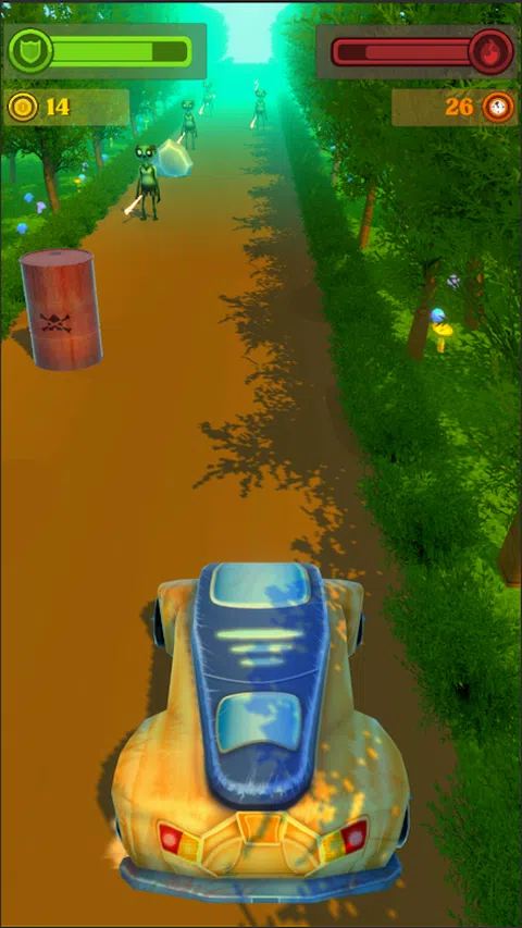 避开你面前的障碍物,粉碎所有挡在森林小路上的僵尸。粉碎僵尸时赚钱。您可以用赚到的钱购买新车。不要忘记在途中购买修理包和汽油