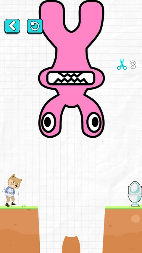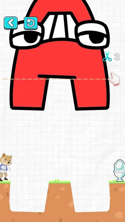 滑动手指以切出的桥梁,并帮助男孩到达厕所,他很着急! 【怎么玩】 1.从左向右滑动以切割上面的石头; 2. 石头会掉下来填坑; 3.石头不能高于小人,否则小人会掉下来; 4.石头应尽可能平整; 5.让男孩顺利到达厕所,游戏获胜
