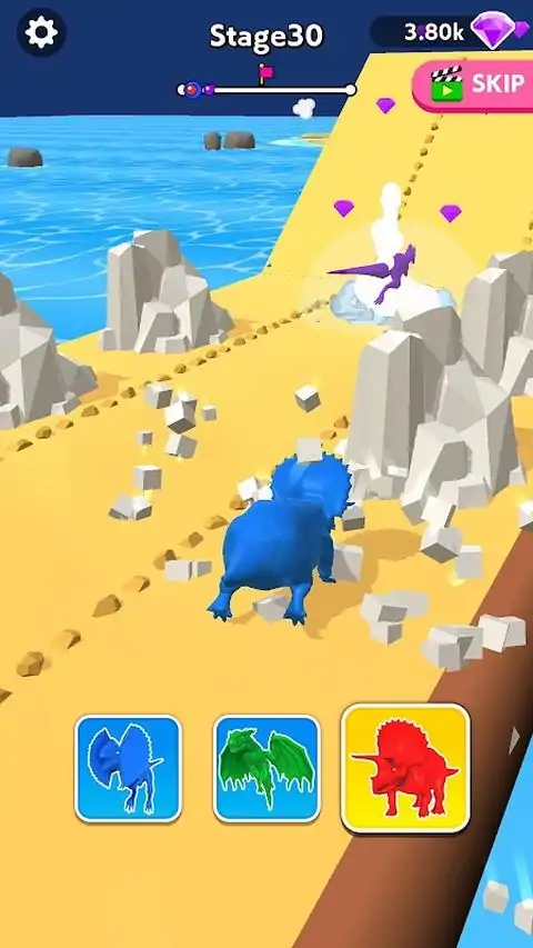 穿越所有元素:陆地、空中和海洋。要征服它们,您需要快速进化。改造您的恐龙以适应环境,并在自己的游戏中击败对手,成为赢家