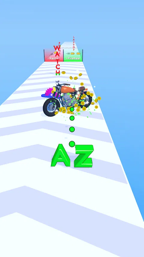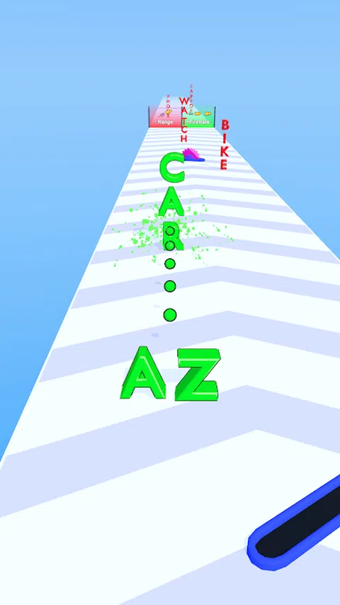 射击单词并收集物品。 增加您的火力和射程以收集更多物品