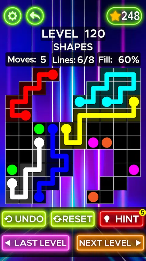欢迎来到点线连线益智游戏! Connect dots 是一款具有挑战性的益智游戏,您必须通过从一个点到另一个点画线来清除这些点。 在这款令人上瘾的双点颜色连接游戏中,准备好连接点并让迷人的颜色栩栩如生。 这款益智游戏挑战您跳出框框思考并训练您的大脑。 在此连接点益智游戏中,您的任务是通过在点与点之间画线将具有相同颜色的两个点连接起来。 颜色连接点游戏包含一个正方形矩阵,矩阵的大小根据级别的难度为 5x5、6x6、7x7、8x8、9x9、10x10、块墙级别和形状级别。 在这个清晰的点游戏中,您必须将匹配的颜色与着色管连接起来,以创造出自由流动的颜色。 配对所有颜色并覆盖整个棋盘以解决连接点挑战游戏中的每个难题。 不过要小心