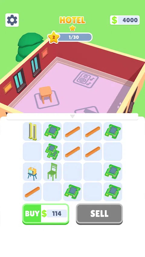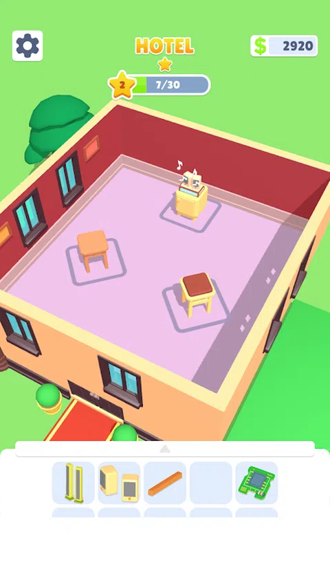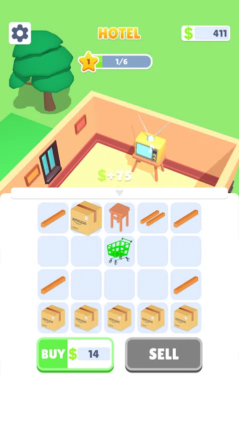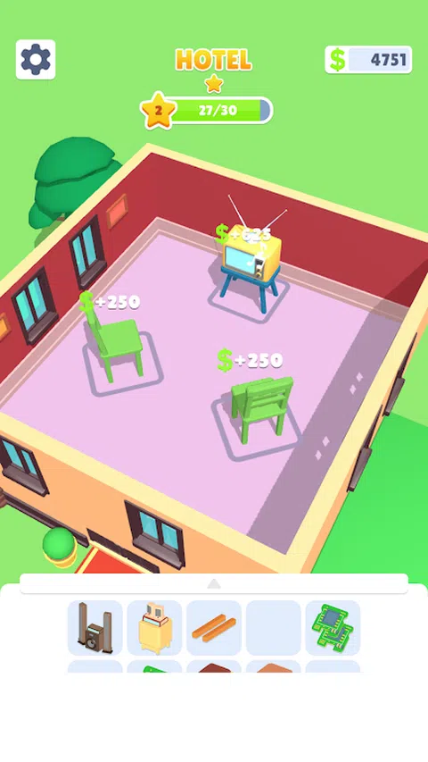 在这个游戏中,拖放对象以合并它们。 合并后的物品可以放置在酒店中以赚钱。 从头开始建立您的酒店帝国