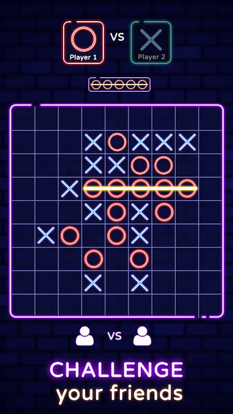井字棋 2 玩家 - XO 是众所周知的 xoxo 益智游戏,许多人长期以来一直热衷于此。井字棋 2 玩家游戏使用简单的逻辑,不需要数学来解决,这些令人上瘾的井字谜题为拼图爱好者提供无尽的乐趣和智力娱乐。 井字棋的目标是将您的 3 个或更多符号(X 或 O)排列成一个表格。井字棋是一款适合两名玩家的游戏,他们轮流标记正方形上的空格。成功将三个分别水平、垂直或对角线放置的玩家将赢得 XOXO 游戏。 要玩井字棋 2 玩家,您需要策略、战术和观察技能。您可以与 AI 对战,也可以与朋友一起玩。 ? 井字棋 2 玩家 - XO 的特点: - 炫酷的霓虹灯 xoxo 效果 - 简单易玩,但很难成为井字棋高手 - 这个井字棋游戏中的各种难度级别:3x3、6x6、9x9、11x11 网格 - 双人在线游戏,挑战您的朋友。 - 您可以调整 3 个级别的 AI 难度:简单,中等和困难。 ? 额外的发光 xo 游戏合集: - 井字棋发光 - 会发光的水的类型 - 发光拼图块 - 发光数独 - 还有更多游戏将每周更新 玩井字棋 2 人游戏是锻炼大脑和挑战逻辑技能的好方法。享受并与您的朋友一起快速玩,看看谁更聪明