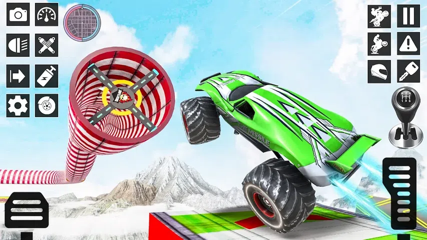 准备好享受怪物卡车特技超级坡道。是时候在不可能的多辆车上玩得开心了 新车特技游戏中的曲目。快速驾驶,在大型坡道上做特技