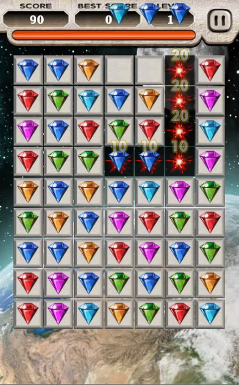 Jewels World 2018 是一款非常令人上瘾的益智休闲游戏。 怎么玩: - 匹配 3 个或更多相同的珠宝。 - 匹配珠宝直到板透明,珠宝星会出现。 - 使珠宝明星下降到最后一行以通过关卡。 提示:快速消除珠宝可以获得额外分数。 游戏特色: - 两种游戏模式:街机和经典。 - 匹配 4 颗宝石可以赢得宝石的炸弹。 - 匹配5颗宝石可以获得变色宝石和2颗照明宝石。 - 宝石炸弹可以消除周围的宝石。 - 变色宝石可以消除任何其他颜色的宝石。 - 计时宝石可以延长播放时间! - Lighting Jewel可以消除一排或一列的珠宝