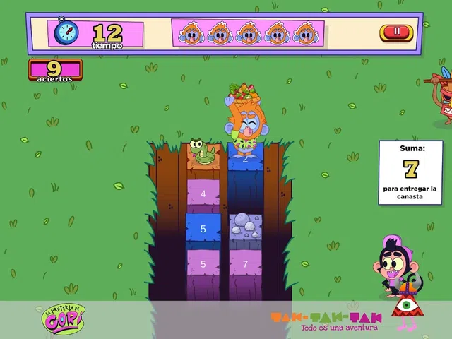 在棋盘上选择一条路径,帮助哥里避开丛林中的危险。 添加正确的数字以获得请求的数量。 赶快