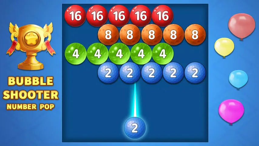 欢迎来到欢乐又解压的数字泡泡世界! 合并数字泡泡的畅快乐趣!超好玩数字泡泡龙益智游戏! 畅游在丰富多彩的泡泡世界中,匹配颜色、合并数字、射击泡泡、解决谜题,在锻炼大脑的同时放松身心! 数字泡泡龙是一款经典好玩的免费数字泡泡游戏!射击并合并数字泡泡,挑战更高的数字等级! 如何玩数字泡泡龙? ★ 瞄准相同的数字泡泡; ★ 点击泡泡射手切换数字泡泡,运用你的解谜策略; ★ 合并相同的数字为更大的数字(2048以及最多100万); ★ 通过连击可以更快达到更高的数字级别。所以最好使用你的策略! 数字泡泡龙的特点 ● 轻松简单,伴随贴心的引导和字幕提示。只需点击、射击和合并; ● 烧脑益智且充满挑战。一旦开始射击,快乐停不下来; ● 经典的数字合并游戏,老少皆宜; ● 丰富新颖的主题背景,界面清新,画质精美; ● 无需网络,单机游戏不消耗网络流量; ● 免费游戏!免费下载数字泡泡游戏! 独特新颖的玩法,与众不同的体验 没有压力,没有步数限制,你可以尽情思考,运筹帷幄解谜策略; 丰富的有趣元素和免费奖品等着你来; 全新强大又实用的道具帮助你赢得高分; 琳琅满目的泡泡材质,有气球、足球、柠檬和冰沙等。 数字泡泡龙为你提供沉浸式的游戏体验,同时你可以轻松赢得金币、主题和勋章,并且放松和锻炼大脑。玩转由各种材质制成的数字泡泡,打造专属于你的多姿多彩的泡泡世界。 精妙的匹配,独特的合并,运筹帷幄,步步为营,用你的睿智聪慧开始一场有趣且充满挑战的合并数字角逐,成为一代传奇泡泡射手