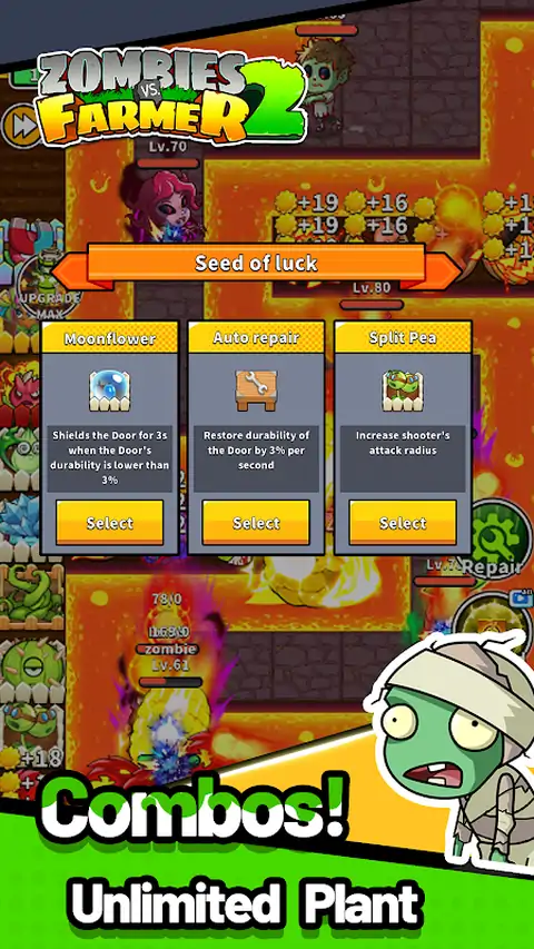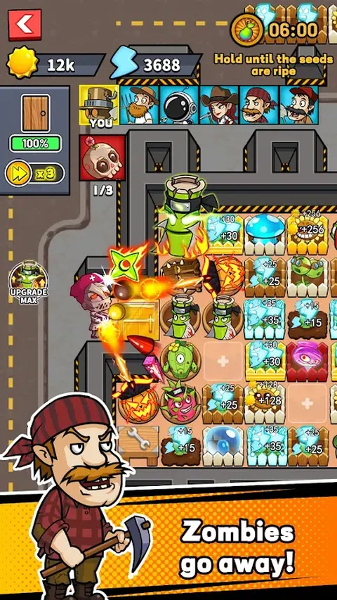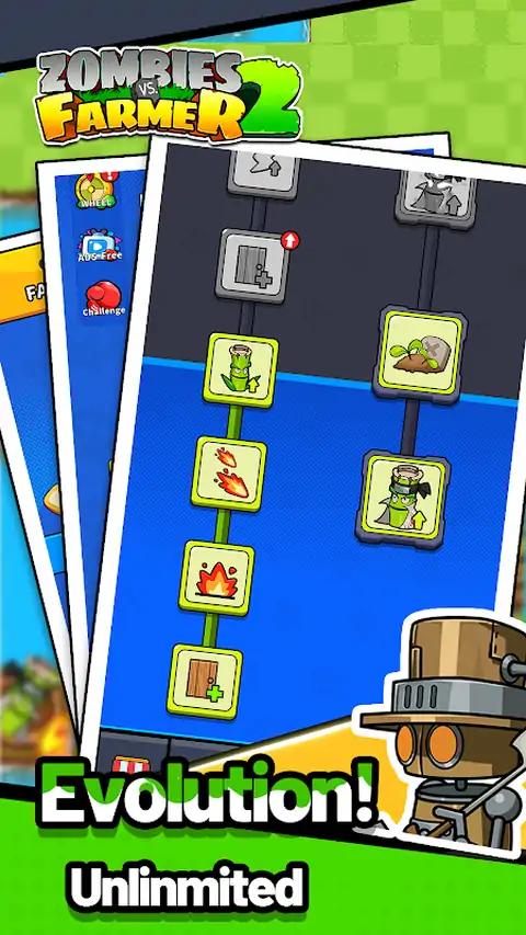 又到了收获的季节!邪恶的僵尸又回来造成混乱。不要害怕!保护您的大门,让我们热情地开始建造和升级!建造功能强大的植物射手,增强闪电草的能量储存,并记得升级你的牧场。这将为您带来大量的阳光。观察僵尸浪潮的瓦解,胜利的天平将逐渐朝着有利于您的方向转变. 探索世界 在新版本的“Zombie vs. Farmer 2”中,有十多个新的场景地图可供您测试自己的技能。从郁郁葱葱的草原牧场到火山底部充满熔岩陷阱的危险山谷,然后进入白雪皑皑的冰雪世界。您还将有机会在月球上行走,在数百回合中与宇宙僵尸作战。 解锁超级天赋 从现在开始,大量的自然技能等着你去发现。 [阳光开始] 在每场比赛开始时获得大量的阳光资源。 [愤怒打击] 植物射手可以造成十倍的伤害。 [快速加载] 射手攻击得越多,其攻击速度就越快。据说甚至还有传说中的隐藏技能! 提防神秘僵尸 与上一部分相比,此游戏中来势汹汹的怪物数量要多得多。寻找稻草人僵尸部队,可怕的熔岩生物,拿着棍子的雪山野兽,以及宇宙另一侧的月球僵尸,他们准备好以前所未有的难度测试你的技能