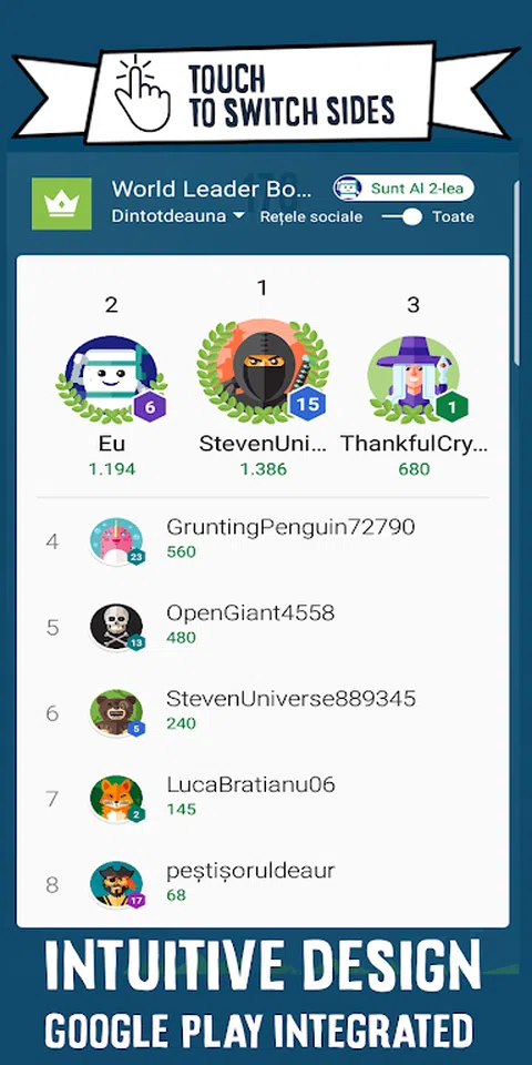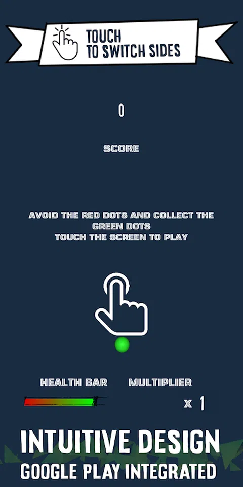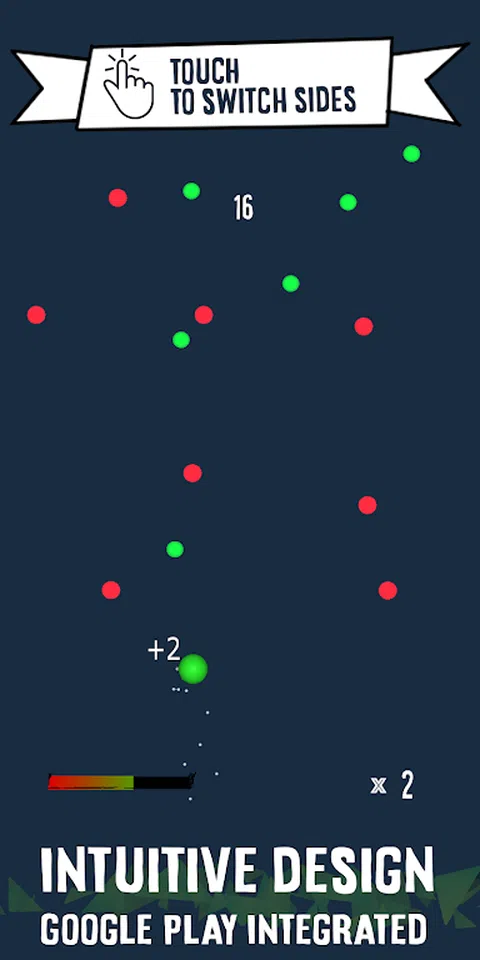 滑动开关 休闲游戏 与其他玩家竞争,统治滑动切换游戏的全球排行榜。 触摸屏幕切换方向。 避开红点,收集尽可能多的绿点