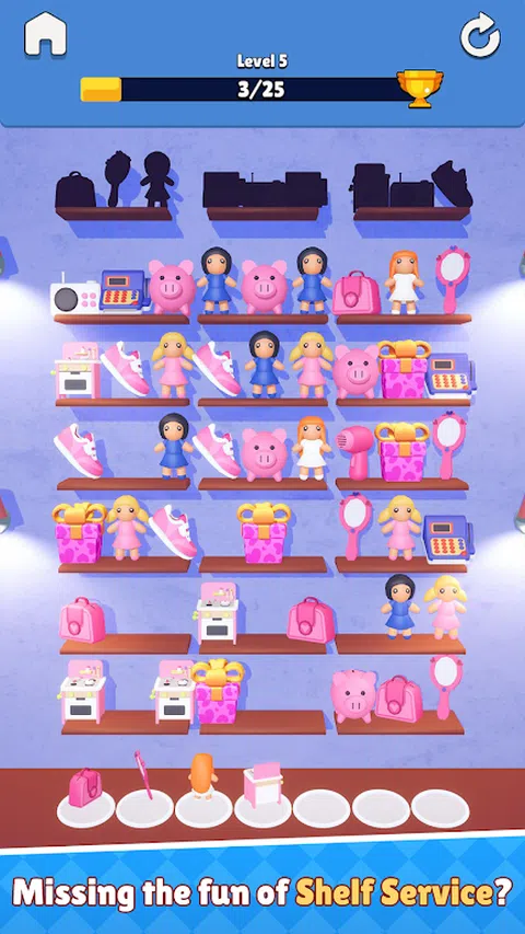 欢迎来到货架服务! 在轻松的氛围中点击并合并日常生活中的美丽物体。许多类型的对象和关卡在等着您,在游戏中发现它们! 您可能认为这很简单,但不要被这款游戏的外观所迷惑!从休闲用户到更高级的用户,每个人都会动脑筋
