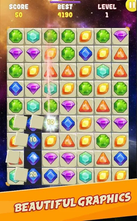 宝石世界中的宝石比赛银河与令人上瘾和令人兴奋的冒险!让我们现在下载并播放。这是免费游戏。 Jewel Match Galaxy 是一款令人上瘾且令人兴奋的冒险比赛 3 游戏,充满了五颜六色的珠宝加工效果!这个宝石游戏有精心设计的谜题供您随时随地玩! Jewel Match Galaxy 是一款终极经典的三消益智游戏,具有令人上瘾的游戏玩法和具有挑战性的任务。以你的方式交换和匹配珠宝,展示你最好的战略动作以获得最高分并通过数千个关卡 特征: - 易玩难以掌握。 - 匹配 4 颗宝石可以获得 1 线效果。 - 匹配5颗宝石可以获得变色效果。 - Mtach 5 更多的珠宝可以获得更有用的特殊道具 - 珠宝效果。 轻松有趣的游戏 - 易于控制,有趣的游戏,出色的图形! - 只需用您的单指交换和匹配! 没有互联网?不用担心!可以离线玩的游戏。 谢谢