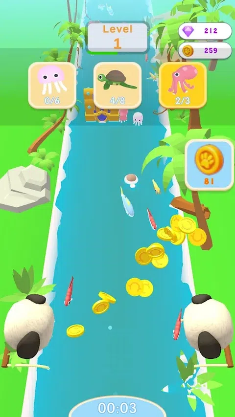 你能抓到河豚、鱼或藏宝箱吗?快来体验宠物派对:网钓,音乐节奏的放松和挑战,流行的虚拟钓鱼游戏让你欲罢不能。 游戏特色: 简单但令人上瘾的控制: 使用直观的控件,通过简单的操作,玩家可以体验使用渔网捕鱼。享受仅使用网即可一次捕获大量鱼的令人振奋的感觉