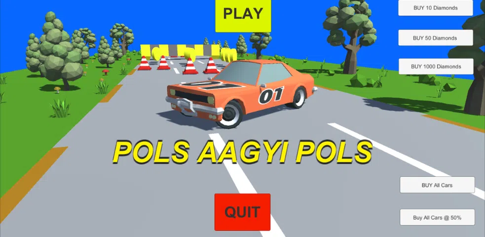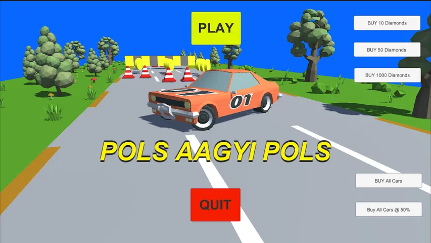 这是一款关于印度病毒式表情包“Pols Aagyi Pols”的幽默游戏。 在这个游戏中,您将在一辆汽车内奔跑并收集硬币。 如果您撞车,您将输。如果你有足够的钻石在游戏后期消耗,那么你将能够从崩溃点再次复活。 我将不断添加内容并改进游戏图形。 如果您觉得慷慨,请考虑捐赠或购买游戏中的物品