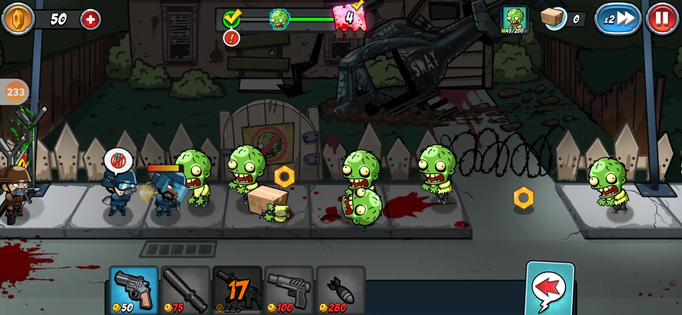 - 收集武器:收集约50种不同类型的武器。用它们提高你的FPS技能! - 奇异的僵尸:滑板,保龄球,持枪,胖,粉红,甚至狗僵尸!面对各种僵尸! - 挑战地狱模式!地狱模式阶段刺激了战斗的欲望,但没有升级将是艰难的!如果您有技能和信心,那就试试吧! - 挑战无限模式!消除无尽的僵尸,挑战世界排名!与朋友一起拯救人性。 - 体验我们的实时战斗模式的概念!与世界各地的SWAT团队竞争!通过实时网络战斗检查您的技能! - 世界清洁日!让我们清理不断出现的僵尸!扫除所有与世界各地的玩家征服地球的僵尸! - 终极武器系统:用最好的武器,狙击手将你的手指拖到屏幕上以瞄准僵尸! - 创建最强大的特警队:你可以用硬币和星星让你的特警变得越来越强大。
