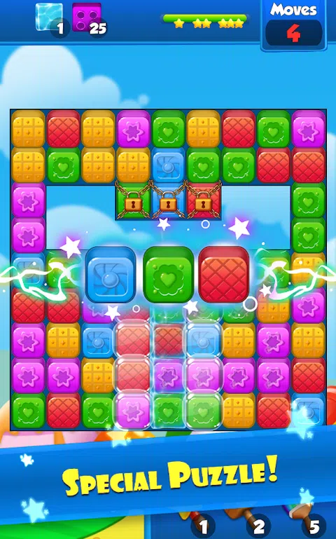 将两个或三个或更多相同颜色的积木与 NO 5 LIFE SYSTEM 匹配,以清除关卡并从它们卡住的地方收集玩具。 但小心点!在您的动作有限的情况下保存所有玩具并不容易! 不再需要碾碎糖果、打碎钻石、碾碎饼干或耕作。 破坏街区,享受这个多彩的冒险! Cookie Crush Cubes Blast 有 3100 个令人惊叹的关卡,可以玩独特的目标和游戏玩法,您将不得不玩具爆破所有玩具, 收集所有美妙的糖果和饼干,清除果冻棒棒糖,小心巧克力糖果,它可以传播和阻挡你, 还有糖糖可以包裹你最喜欢的糖果并将它们变成糖。 您必须尝试从这款出色的游戏中提出更多要求! Cookie Crush Cubes Blast 具有美妙的甜味助推器,可以到达难以到达的地方以降低玩具爆炸。 进行 5 次匹配中的 2 次,以获得能够清除一整行果冻的明星射击火箭。 匹配 7 个中的 3 个,得到橡皮糖炸弹,它会弹出并炸开它周围的所有棉花糖糖, 匹配 9 个中的两个,以获得充满饼干的特殊彩虹色瓶子补救措施,将屏幕上的随机蛋糕颜色更改为软糖颜色。 匹配超过 11 个以创建果冻飞溅球,将飞溅物发送到屏幕上的糖果并使其弹出和爆炸,它不会是玩具爆炸。 如何玩 Cookie Crush Cubes Blast:点击并通过匹配 2 个相同颜色的糖果来匹配两个,匹配超过 5 个将为您提供特殊的 cookie 粉碎助推器。 无需切换和飞溅,只需触摸屏幕,它们就会匹配并爆炸,新的糖果会掉下来, 有时盒子会掉下来并且无法匹配,因此您必须匹配它们附近的甜甜圈以使它们弹出, 一旦您在它们附近进行匹配,其他障碍物(例如巧克力和棉花糖糖等等)就会弹出并清除。 我们做了饼干 Crush Cubes Blast 非常特别,具有解锁功能:彩虹刷会飞溅并轰动该区域的所有糖果,并将它们更改为不同的糖 rush 颜色。 糖锤会压碎并溅起糖果和饼干,但不能使玩具爆炸。 魔法女巫传奇明星魔杖会在软糖上施咒并使其粉碎和轰鸣 巧克力棒和棉花糖会散开并占据你的软糖,所以一定要在它们附近匹配两个,以使它们成为玩具爆炸