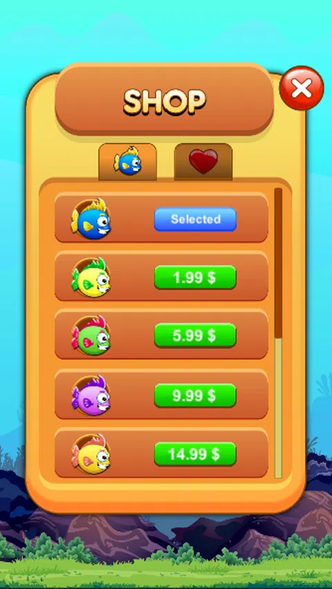 避开障碍物! 通过跳过障碍物来避免障碍物以增加分数。 帮助鱼跳跃并尝试覆盖尽可能远的距离