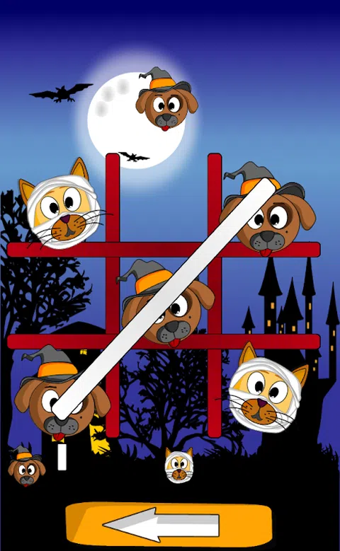 穿着万圣节服装与猫和狗玩井字游戏。 2017 年免费万圣节游戏。 猫狗脚趾万圣节是与孩子、朋友互动或在排队等候时享受美好时光的有趣方式。 木乃伊、女巫、狼、蝙蝠和猫头鹰都是你的朋友。 游戏特色: - (1) 单人游戏,人类对抗安卓设备。 - (2) 两人游戏,人对人。 - (3) 三个难度级别。 - 智能人工智能(我们保证人工智能不会一遍又一遍地做出同样的动作。)。 - 困难模式中的随机因素(有时人工智能会犯“错误”,所以你可以赢:)) - 伟大而可怕的图形。 - 有趣的声音。 - 大屏幕支持。 使用这个游戏来获得乐趣。 猫与狗选择你的领域。 联系方式及建议: 谢谢,任何建议将不胜感激。 度过一个令人毛骨悚然的 2017 年万圣节