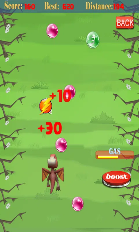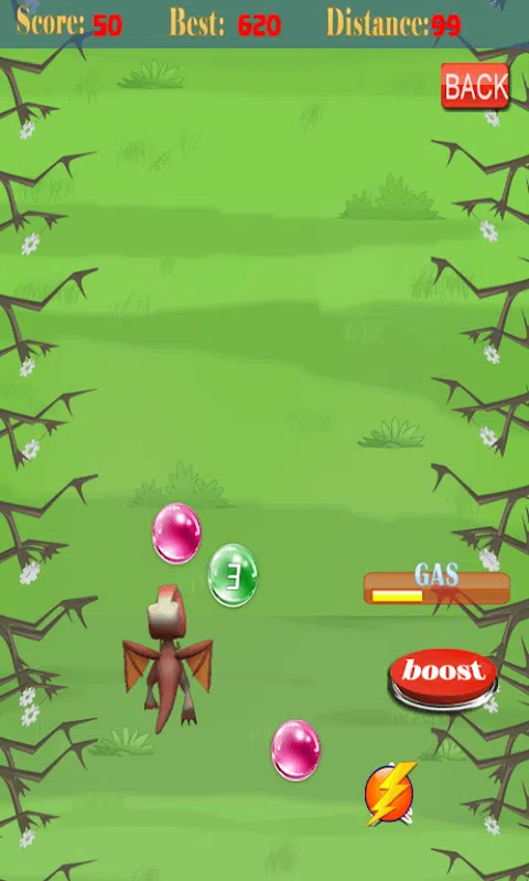 游戏特色 酷的图形以及一个真棒卡通风格人物 可爱和漂亮的森林环境 甜的背景音乐 尼斯的声音效果 这条龙已经出来有乐趣在森林里。他飞在森林里。但他需要更多的速度吃小动物和功率球。龙会不会对他自己的,但与弹射器的帮助下飞行。所以,你需要帮助他有乐趣,达到的最大速度。龙是饿了,需要吃更多的动物。 在“龙之推”你得到了高速的在森林的刺激和冒险。这是龙出去吃动物。他需要的最疯狂的速度充满了冒险为好。所以帮助这个龙来获得最快的速度完成对运行的最大距离。漫游森林与乐趣。点击和拉龙时加载,然后松开启动弹射器。当你拉动和释放弹射龙将开始与水中的最初推动以极快的速度飞行。倾斜你的设备的左,右,驾驭飞龙,和吃多少电球进来的方式成为可能。这些不同的功率球会给高速和精力龙。龙会吃掉功率球转化成气体,所以他过得越来越快。 但要注意