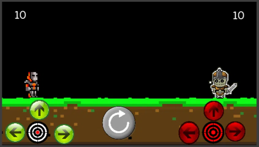 我的游戏是关于两个只想互相残杀的战士。角色可以扔刀和剑。有一个重置按钮和移动、投掷和跳跃按钮