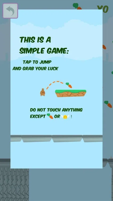 抓住你的运气! 想看看今天是不是你的幸运日? 试试这个游戏! 在汉语中,胡萝卜听起来像幸运萝卜。 你抓的胡萝卜越多,你就能得到越幸运。 =) 该游戏将严重挑战您的技能和反应能力!简单的一键式游戏,让您享受数小时的娱乐! 怎么玩 • 在这款基于节奏的动作平台游戏中穿越危险! • 点击跳跃并尽可能多地抓住“幸运萝卜”! • 有小精灵可以帮助你长寿 但相信我,这个游戏并不是那么容易生存 xD ! 游戏特色 • 简单可爱的用户界面 • 无尽模式!挑战你的极限 • 高分将自动保存在屏幕上 原始几何冲刺零下和果冻跳跃游戏的升级版
