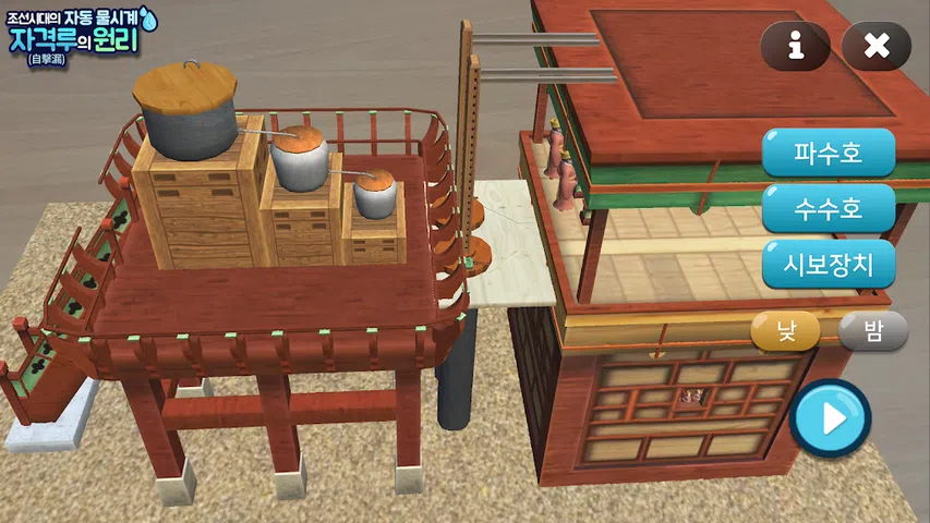按下了望台、thesuho、报时器等按钮,可以观察札镜奴的内部。您还可以使用白天和夜晚按钮调整时间。