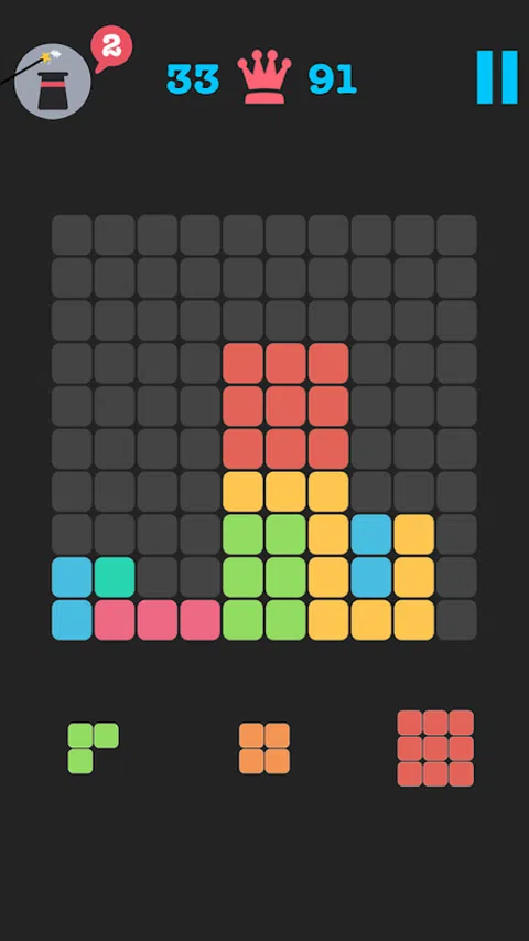 怎么玩: 只需放下块来创建和破坏垂直和水平的完整线条,尽量保持屏幕不被块填满。 在一场比赛中尝试两种不同的游戏风格,并尽可能获得最高分! 特征: - 超级六边形拼图块模式 - 1010格板尺寸模式 - 日夜主题(黑白) 游戏没有时间限制,玩累了可以暂停游戏,然后从离开的地方继续!用匹配的块填充所有网格并享受 10x10 块游戏