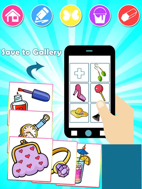 你可以在准备好的图像轮廓中填充颜色,也可以创建自己的原始图形。游戏操作简单上手容易,即使是最小的孩子也能玩它。这个游戏包含了许多美丽的形象,著名和喜爱的美容产品,衣服,帽子,太阳镜,珠宝,包和钱包等,快来开启填色之旅。