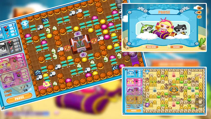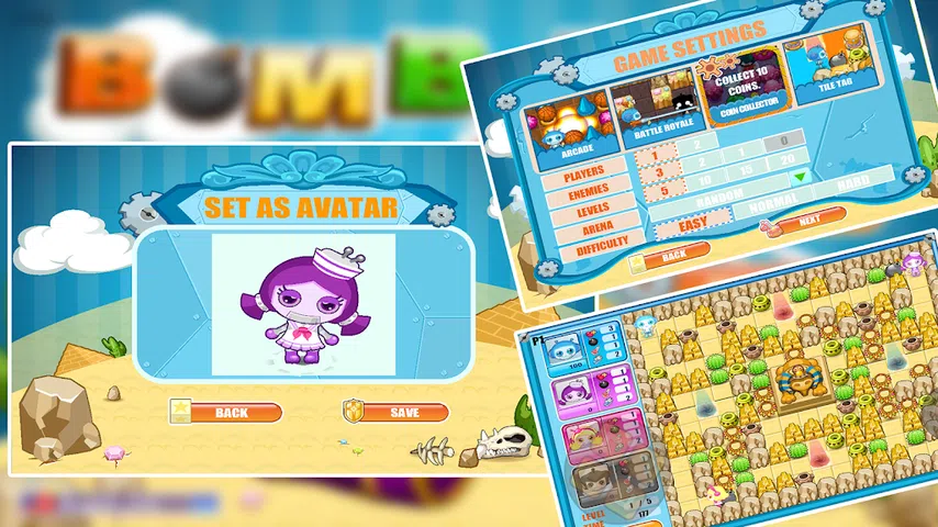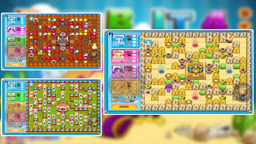 轰炸它 4 是神奇机器人炸弹人风格游戏的第四个版本,您必须在无数不同级别上测试您的炸弹投掷技能。游戏玩法与以前的版本相同—你控制一个角色,你必须在每个关卡中移动并部署炸弹来试图摧毁你的敌人而不被自己杀死。 在这一集中,您实际上可以自定义您的角色,并为他们配备一系列不同的酷装。此外,享受多种新游戏模式,包括合作模式,您可以在其中与朋友对抗 AI 对手。游戏玩法仍然很有趣,如果您喜欢这个标题,您一定会喜欢的! 特点 Bomb It 4:机器人炸弹人游戏: 可自定义角色的服装 具有更多挑战的全新地图 更多角色可玩 炸弹人风格的游戏 怎么玩 Bomb It 4:机器人炸弹人游戏: 您可以在五种不同的模式下玩游戏:街机、大逃杀、绿区、生存、宝藏 您可以在“敌人”部分指定敌人的数量。 在“关卡”部分选择要玩多少关卡。 在“竞技场”部分选择战争地图。 使用箭头键移动并按下按钮进行操作 Bomb It 4:机器人炸弹人游戏 比如新的战争地图,新的武器。现在下载!你应该叫你的伙伴继续奋斗