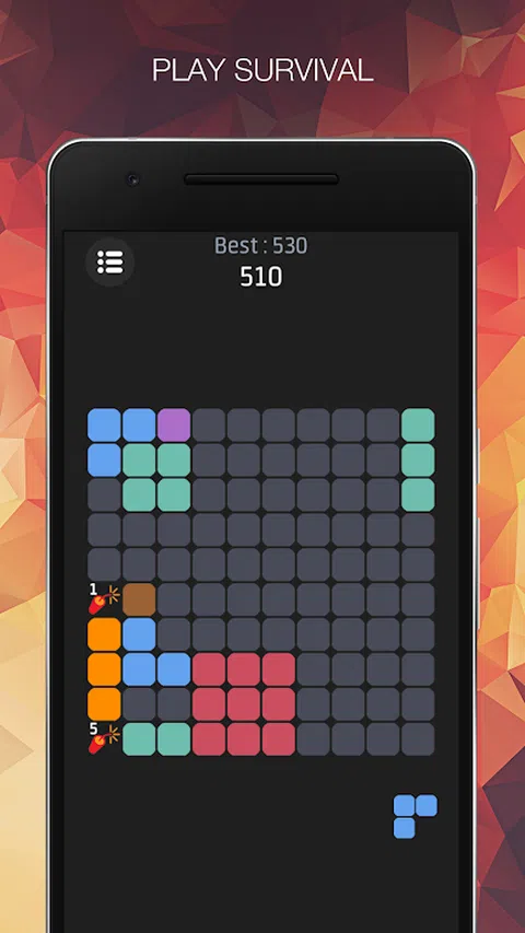 Block Puzzle Fun Unlimited 游戏是一款简单但具有挑战性和令人上瘾的游戏。它可以在几秒钟内随时播放,让您精神焕发。 怎么玩? - 目标是放下方块,以便在屏幕上垂直和水平地创建和销毁完整的线条。不要忘记阻止方块填满屏幕。 - 没有时间限制,没有颜色匹配!用匹配的 Block 填充所有网格,享受 Block Puzzle Fun Unlimited。 特征 : - 5 种不同的游戏模式。 - 为所有模式集成了完整的帮助/说明
