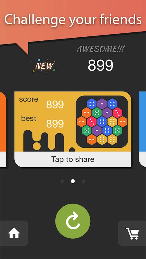 将骰子融化在一起以获得更大的骰子。这很简单而且令人上瘾。您需要做的就是将新骰子放到棋盘上。匹配3个相同的以获得更大的。 通过将它们融合在一起来获得很多分数。并向你的朋友吹嘘它