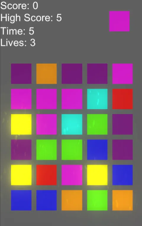 在 Cube Crusher 中,您必须将屏幕右上角的颜色与下方网格中的其他颜色匹配。每次匹配颜色并获得最高分时都会获得分数。您有 3 秒的时间来匹配一种颜色,每次匹配一种颜色您将获得 1 秒。您还会获得 3 条生命,如果您匹配错误的颜色或时间用完,您将失去 1 条生命