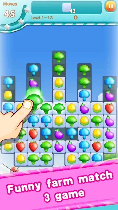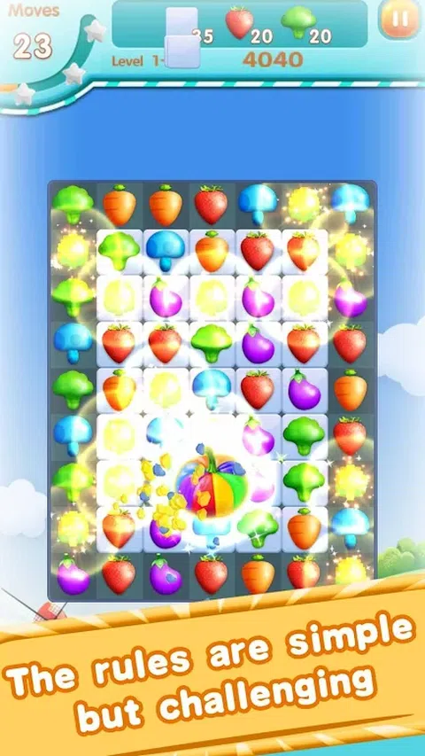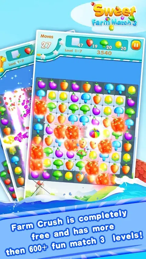 这是一个收获的季节,甜蜜农场里的蔬菜都已经成熟了。但是一个邪恶的女巫占据了这个甜蜜的农场。只有当你解决了女巫设置的pullzes并在不同的农场地图中收集星星,甜蜜的农场才能回归农民! 那么如何解决pullzes呢? 你会发现很多美味的蔬菜。如糖果玉米、胡萝卜、茄子、花椰菜等。你需要切换它们并通过创建同一植物的横向或垂直线来折叠 3 个以上的蔬菜。更多的作物同时倒塌,获得的等级越高,获得的特殊道具(番茄炸弹!玉米糖切碎机!超级花椰菜切碎机!大茄子磨!)也越多。更重要的是,倒塌相邻的道具,效果超棒会出现。所以收集你的道具将帮助你获得更高的分数。不要犹豫展示你的才华。快来加入具有挑战性的救援之旅! 甜蜜农场的特点: 1.伟大的视觉效果和独特的图形! 2.Sweet Farm 很容易上手,但仍然具有挑战性。 3.超过600个关卡。 5.收集目标星星以解锁农场地图中的新任务。 6.特殊道具:番茄炸弹、糖果玉米切丝机、超级花椰菜切丝机、大茄子和终极道具磨,看你的天赋。 有一个愉快的冒险时间!在你的空闲时间玩它,你会感到平静和放松。这款三消益智游戏会吸引你的眼球