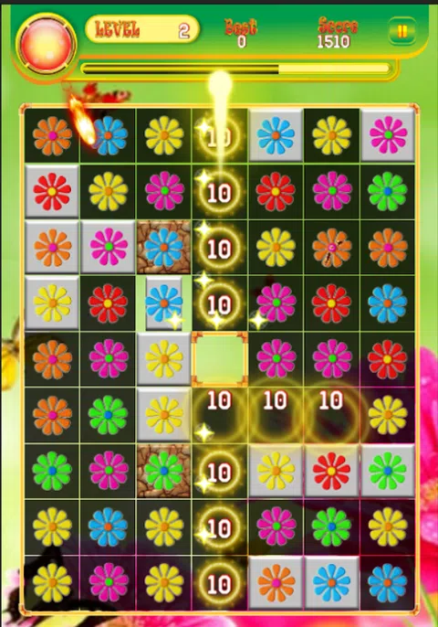 怎么玩 : 1.更匹配3个同样快速的花朵和多彩的交流。 2.匹配5朵花使用特效宝石。 3.通过关卡并尝试在每个关卡中获得所有星星。 4.想要更高的分数!摧毁所有的宝石! 5.完成任务。 特征: - 完全免费且精美的游戏玩法。 - 易玩难以掌握。 - 数百个谜题关卡等待您的冒险 - 非常强大的图形设计 - 超过 300 个关卡
