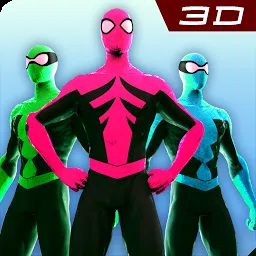 作为 Power Spiderweb 3d 英雄 Rangers 在道路上奔跑和飞行并使用你的力量