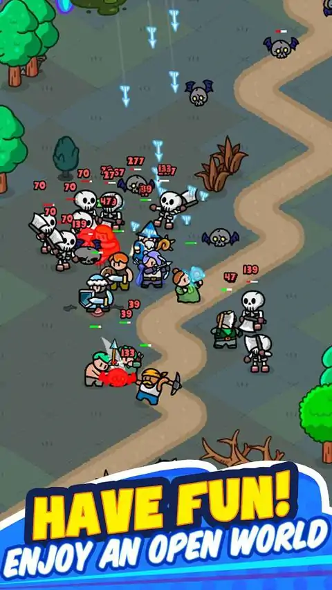 王国唯一的公主被黑暗骑士绑架了!你的英雄是唯一的希望。为了拯救公主,您需要从重建村庄开始。收集树木,开采矿石,建造建筑物以改善村庄。此外,您可以在酒吧招募新英雄。招募和培养使用各种技能的传奇英雄!通过巨大的空旷区域发现宝藏并获取各种怪物和资源。数以百计的怪物出现在地牢中。不过别担心!您训练的英雄可以消灭怪物!现在,忘掉那些复杂且充满手动、耗时打磨的可收藏角色扮演游戏吧。您只需一只手即可移动多个英雄。通过简单的控制,进入有趣、快节奏的砍杀战斗!- 你可以用一只手做任何事情!- 在战场上获取各种资源,例如木材、矿石、肉类等。- 收集并培养可爱而独特的角色。- 尝试地牢并收集传奇装备。- 您可以建立营地并将其留在场上的任何地方。