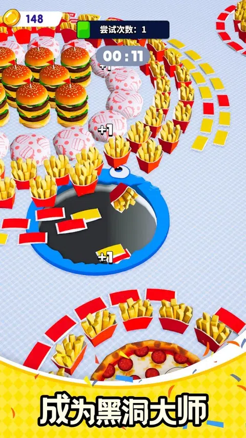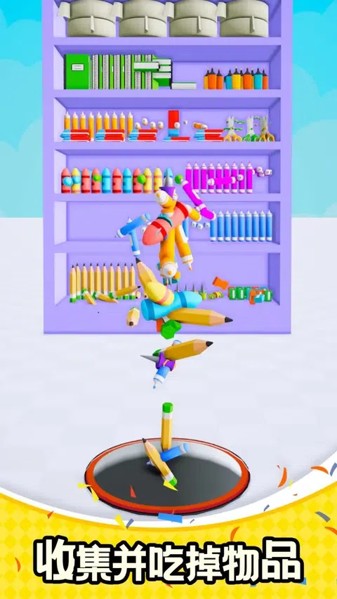 在这个游戏中,你将控制一个强大的洞来收集视野中的所有物体。随着你的进步,升级你的洞,使其更大、更快、更强大,让你快速有效地完成每个级别。