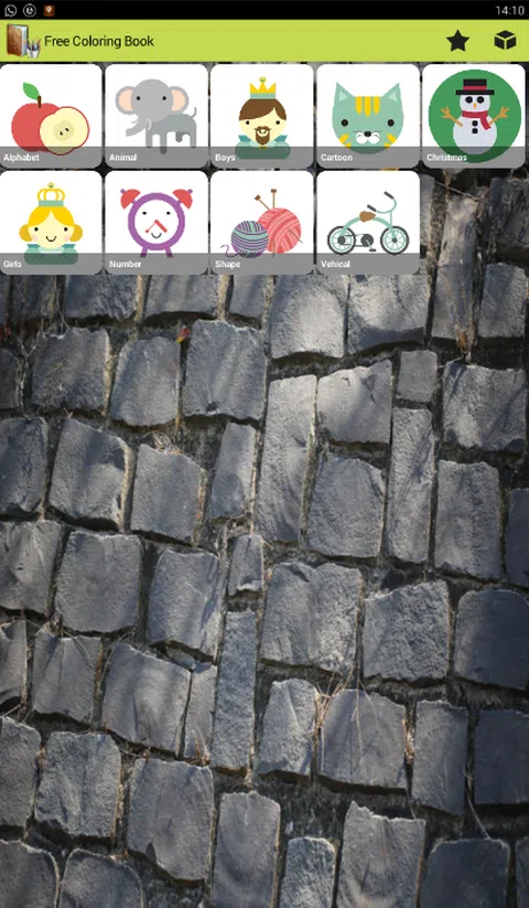 “免费填色书”是一款免费的安卓儿童填色游戏。 很多适合孩子的漂亮图片:字母、动物、男孩、卡通、圣诞节、女孩、数字、形状和车辆。选择你的颜色并开始绘画。完成后,您可以保存并与您的朋友分享。 特征: *一个简单的颜色选择器,让您选择正确的颜色。 *渐变色模式,具有美丽的着色效果。 *将结果保存在您的 SD 卡上。 *通过电子邮件或手机上安装的其他应用程序与您的朋友分享。 让我们准备好上色