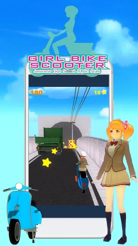 高中女生 3D 跑步动作游戏,女孩骑着滑板车。 让我们跑到很远以避免撞到障碍物并瞄准高分。 您可以将语言从标题屏幕切换到英语。 根据图书馆的不同,系统会要求您提供电话和位置权限,但即使您拒绝也可以。 + 怎么玩 + 滑动或轻弹屏幕,从右向左操作角色。 由于摩托车是自动运行的,所以我们要适时避开障碍物。 如果您遇到坚硬的障碍物,则游戏结束。 柔软的障碍物也可以踢。 你能跟上加速度吗? 通过收集散落在路上的路星, 可以与自行车的颜色和角色的服装进行交换。 你可以收集它,你将能够玩你最喜欢的协调。 是一款简单易上手的短时间休闲游戏