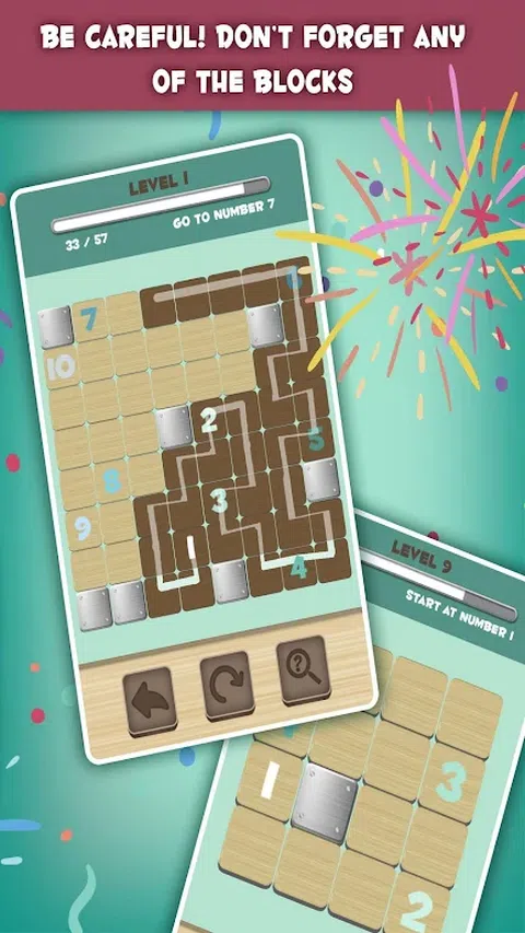 "玩得开心,放松解决这些有趣的困惑和释放压力。 这场比赛将帮助你训练你的头脑中一个有趣的方式。为了解决这些难题,必须创建开始瓦数1和达到最高数量的最后一个块的路径:先进的4轻松水平,8中,10。该水平将无法完成,直到行已经绘就,通过以下所有订单以及所有瓦块已被列入其路径的数字去。 你将有时间用完或你将不得不从头再来,不要忘记它之前完成拼图