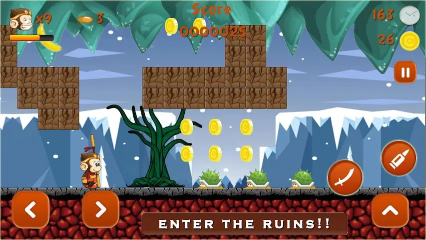 Super Kong Adventure Run: Side Scroller Games Free - 排名第一的移动冒险游戏和平台游戏,现在也可用于 Android 手机和平板电脑。在广阔的平台挑战世界中奔跑、跳跃和砍杀,踏上史诗般的冒险! Kong的大冒险 • 探索由地下城、城镇、宝藏和狡猾的怪物组成的神奇国度 • 向众多敌人挥剑斩杀 • 寻找强大的武器、物品和法术来打败你的敌人 • 获得经验并升级你的角色 • 冒险进入阴暗的洞穴和地牢,发现强大的隐藏宝藏 • 超级冒险 - 横向卷轴平台游戏 丛林金刚历险记特点 • 体验动作与探索之间的激动人心的结合 • 寻找并收集所有水果并将它们带回家 • 以惊人的视觉效果开始一场华丽的冒险 • 令人上瘾、惊险刺激和具有挑战性的丛林冒险游戏 • 老式的跳跃和跑步平台/障碍赛跑者 • 适合儿童、儿童和成人的经典平台游戏 • 带有简单的游戏机键盘控制的横向卷轴游戏 • 轻松自由的游戏 - 难以掌握 • 经典丛林复古丛林和跳跃冒险 • 丛林杠铃跑的流畅控制 • 击败许多老板和超级可爱的敌人 • 享受很多乐趣! 横向卷轴平台游戏 • 专为移动设备设计的流畅且具有挑战性的平台游戏。 • 针对智能手机和平板电脑优化的精确触控。 • 适合女性、女孩、男孩、婴儿和儿童的具有挑战性的游戏。 • 现在他可以捡起、投掷和滑行。 • 他可以骑他的宠物来协助他的旅程。 • 奔跑、跳跃和探索拱廊
