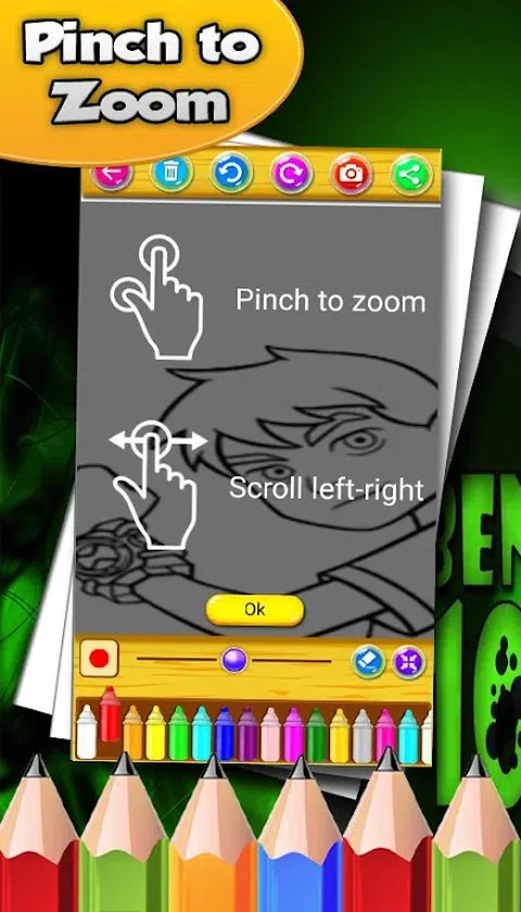 如何着色 Ben 10 是一款适合所有年龄段的免费应用程序。画出你最喜欢的 Ben 10 和其他一些角色,如 Benjamin Kirby Tennyson、ben Tennyson、Ultimate Alien、Gwen Tennyson、Kevin Levin、Gwen Tennyson、Rook Blonko、Max Tennyson、Magister Labrid、Magister Labrid、Magister Patelliday、Manny Armstrong。 本着色游戏中最好的着色页,适用于 Ben 10 等。绘画从未如此简单和有趣,所以让我们召集您家里的每一个人来玩我们的着色页应用程序。 女孩和男孩都喜欢给 Ben 10 上色,这就是我们为 Ben Ultimate 创作这本创意填色书的原因。这本虚拟着色和绘图书,充满了最受欢迎的角色,如 Ben 10、Benjamin Kirby Tennyson、ben Tennyson、Ultimate Alien、Gwen Tennyson、Kevin Levin、Gwen Tennyson、Rook Blonko、Max Tennyson、Magister Labrid、Magister Labrid、Magister Patelliday ,曼尼·阿姆斯特朗,Chaotix。专为所有人设计,女孩和男孩都一样。绘画和绘制超级英雄是如此简单易行,每个人都可以玩。它适用于手机和平板电脑,无需互联网连接。开始为 Ben 10 超级英雄和整个家庭绘制着色页。 立即开始绘制 Ben 10 着色页!欣赏你最好的卡通图片。超级英雄的图画书可帮助您放松并感觉更好。 Ben Alien 10 着色游戏的特点: - Ben Alien 10 的 80 张可着色图片 - 美丽的颜色用于着色 - 如何着色本超级 10 英雄是为每个人设计的 - 超级英雄的图画书有简单的控制!点击绘画并捏放大着色页 - 3 种语言可用英语、法语和西班牙语 - 与 Facebook、Instagram 和其他社交应用程序的家人和朋友分享您的创作 - 这个填色游戏是一个免费的应用程序,它不需要任何互联网连接 - Ben 超级英雄填色游戏中的所有图片都经过精心挑选。 - 所有的着色页面是免费的 安卓上的 Ben 10 Ultimate 着色书有超过 80 个女孩和男孩的着色页。着色书是任何年龄的伟大教育着色游戏。您可以开始为着色页着色并开始学习如何手动填充图片。 如果您正在寻找适合 10 岁及以上的女孩和男孩的填色游戏,这是最好的填色应用程序。超级英雄的着色游戏准备鼓励您在着色卡通本十张图片中进行创造性工作和创造力