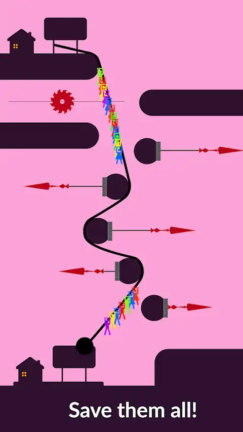 物理游戏爱好者喜欢这个新的益智游戏,他们为滑索画出一条安全的路径,避免危险。任务是将人员从一个客舱移动到另一个客舱。在这条绳索道路上有许多危险和陷阱等着你,但如果你策略性地思考并用安全的滑索连接两个房屋,乘客将会活着到达目的地。 为了营救在这个危险山谷的起点等待的朋友,用手指画一条线,到达另一个家后,点击屏幕让乘客走上滑索。你的手指在屏幕上停留时间越长,乘座滑索的乘客就越多。为了避免危险,你可以在区块周围绘制线条,你可以像绳索一样移动线条。此游戏机以鞭打绳索为基础。