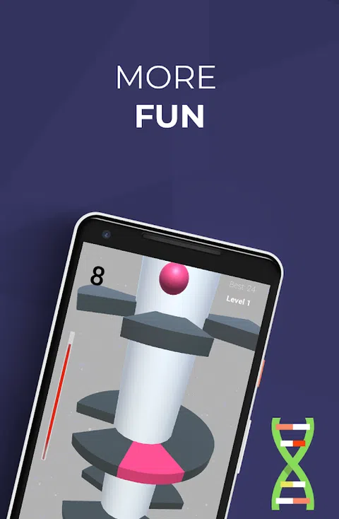 跳球和弹跳球从来没有这么有趣过。简单的控制只需左右滑动手指即可实现球的螺旋旋转和跳跃。尽量避开奇怪的彩色斑点螺旋,让球通过
