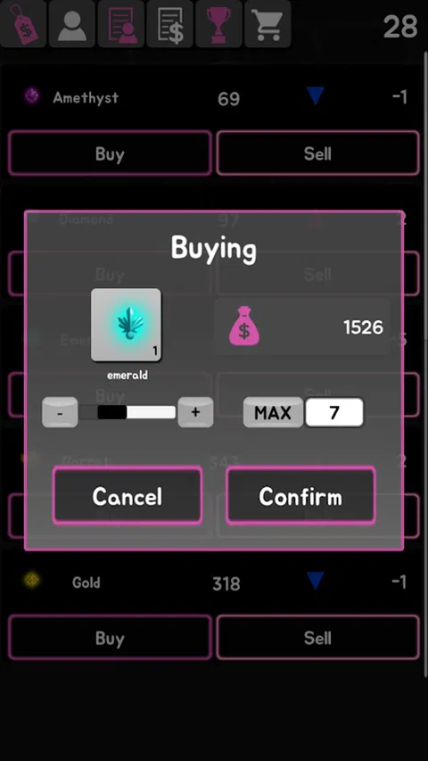 宝石的价格每 30 秒变化一次。 您可以像股票或硬币一样买卖它们。 但不是真钱。这只是一个游戏