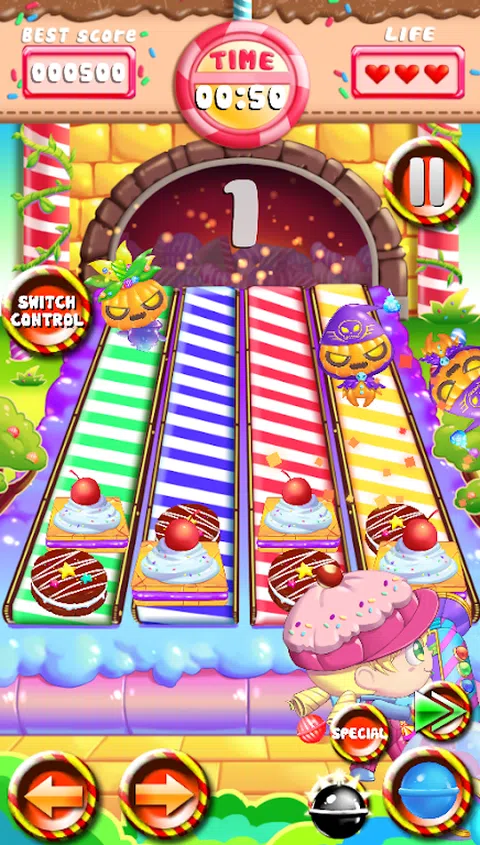 邪恶的南瓜想吃掉你的万圣节糖果! 把它们从你珍贵的糖果上炸开! 对孩子和成人来说都是一段快乐的时光,只有一点点困难会让你忙得不可开交