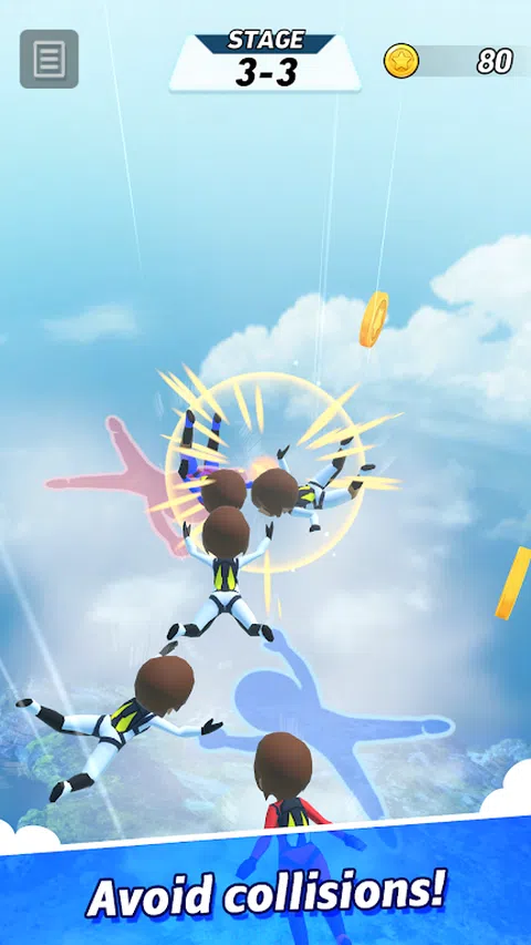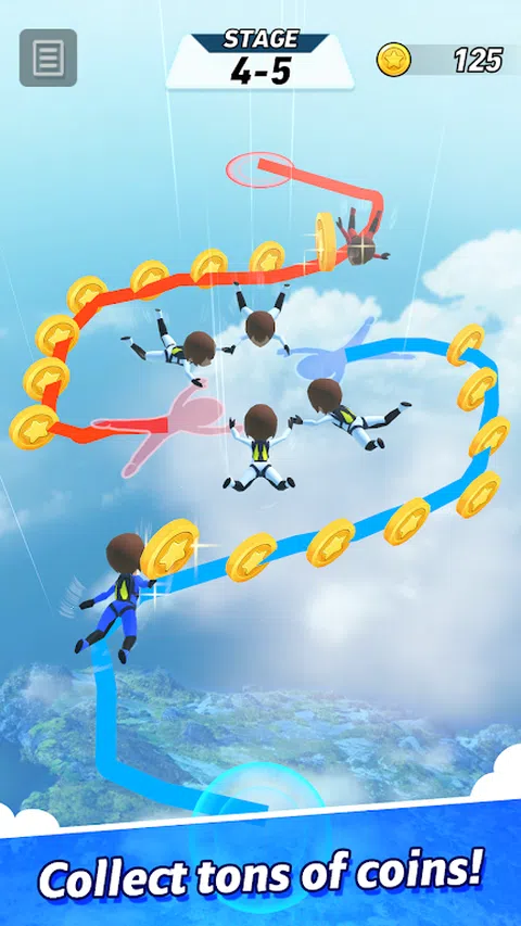 成为一名跳伞运动员,在这个益智游戏中通过画线来编队! 避免碰撞以防止灾难