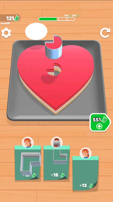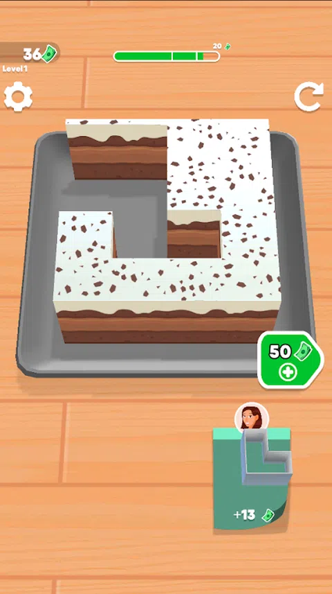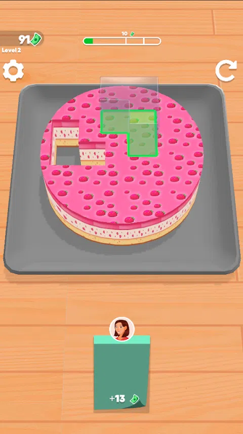 为客户定制切蛋糕片!策略性地将切割机放置,不要在托盘上放任何蛋糕。升级您的切割机并解锁新蛋糕