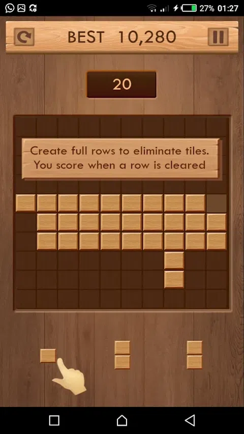 木块拼图是一款简单而经典的游戏,由木块组成。 Block Puzzle是一款木制风格的游戏游戏,很容易玩,很难让您感到快乐,因为您压碎了更多的木块,您会得到更多的积分,您会喜欢这个木块拼图。 如何玩木块拼图游戏: ✓拖动木块以移动它。 ✓尝试将它们全部安装在连续的或完成的列中,木制块将很清楚,如果没有网格下方的形状之一,您将获得游戏结束。 ✓无法旋转木块。 ✓没有时间限制。 ✓在初学者的指南中,易于学习。 ✓完全免费。 您可以随时随地玩木块拼图。 我们真的希望您喜欢这个木块难题