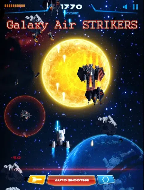 Galaxy Air STRIKERS 我们美丽的银河正受到入侵者的攻击,你是地球最后的英雄 没有任何出色的奖励和提升可以帮助您以这种口径的游戏中无法找到的速度和敏捷性推动您的飞机。街机传奇射击游戏 Galaxy Air STRIKERS 以全新空战模式复活! [怎么玩] 触摸“超级射击”按钮:使用屏幕底部显示的累积量表进行超级射击 轻触“炸弹”按钮:通过召唤后援,在一定时间内挡住敌人的子弹。 控制 - 屏幕滑动移动飞船。飞船有点击自动射击。 - 炸弹按钮触摸:发射超级炸弹以摧毁所有敌人及其弹药筒。 - 收集天空物品以升级或更换你的武器。 这款上世纪 90 年代的经典长期射击游戏已针对智能手机进行了完美重制。 Galaxy Air STRIKERS 凭借其简单的概念和无尽的乐趣,现在可以在您的移动设备上再次享受!现在玩吧! 这款专业设计和创造的天空战斗机统治游戏,让所有年龄段的玩家都感到高兴! Galaxy Air STRIKERS:空袭任务特点: +在天空中拍摄飞机 +战争的天空 + 天力 + 免费游戏应用 + 更新新飞机、武器 + 所有年龄段的游戏和迷宫般的用户体验。 [特征] 支持各种设备,从低规格的手机到平板电脑 控件易于学习和使用,保持在街机游戏中的旧感觉 以单人模式玩游戏以获得经典的街机体验 提供英文版本! 支持成就,排行榜! - 刺激的乐趣,限度地提高太空射击游戏的感觉。 - 解锁非常有用的迷你飞船,它们会跟随你并射击这些银河入侵者。 - 这个游戏的惊人图形设计。 的战斗机战斗和飞行模拟器 你们将驾驶的飞机在性能、特性和燃料容量方面都栩栩如生ity:您可以在垂直起飞中测试自己,利用可变几何机翼并在地球上最好的战斗机的驾驶舱中飞行。飞行引擎可让您在全球范围内航行,但请注意燃油容量并确保及时要求飞行中加油。 太空射击游戏:银河攻击是 1945 年的 Air Plane STRIKERS up 视频游戏。 在这款太空射击游戏中,您将面临越来越多的敌人,并在太空战争中与许多史诗般的老板打交道。在此过程中,您的飞船可以升级杀伤力或解锁迷你天空力量以支持您的飞船并向他们展示谁是银河系的主人