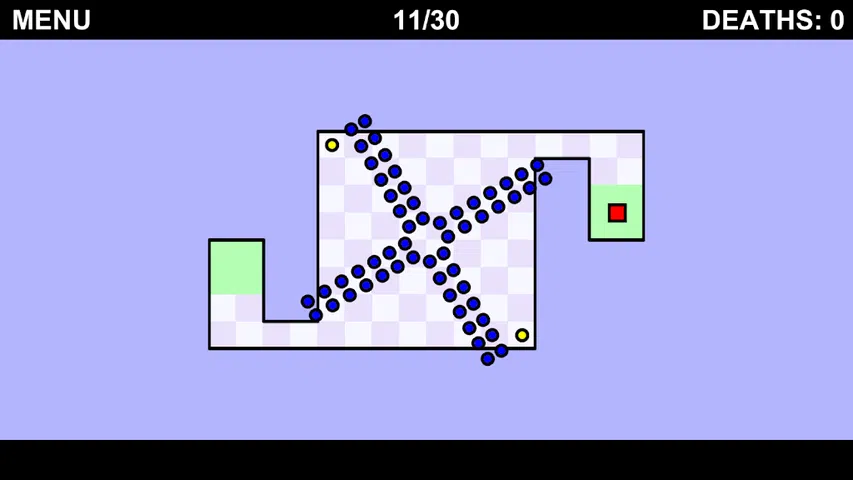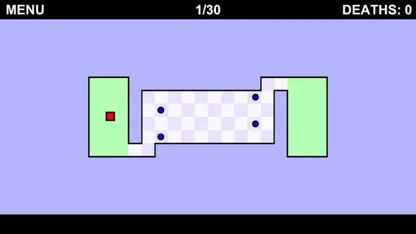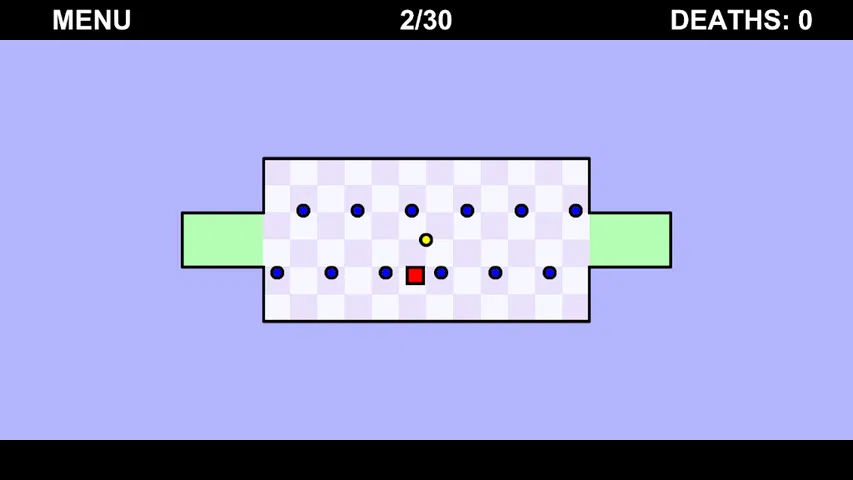 这个游戏的目标是移动正方形并躲避蓝色圆圈。你从一个绿色区域开始,你的目标是用所有硬币到达另一个绿色区域。但是很多敌人会阻止你到达那里,因此你必须躲避它们